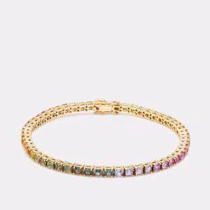 14 cts Rainbow Sapphire Round Cut Gemstones 18k Yellow Gold Tennis Bracelet