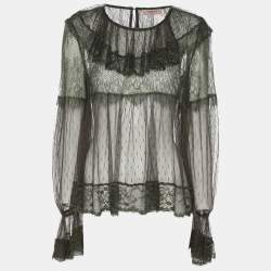Twinset Green Knitted Lace Long Sleeve Tops M