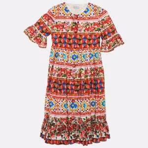 مملوكة مسبقًا فستان دولتشي آند غابانا متنوع الألوان بطبعة عربة مع ورود قطني بحافة مموجة 4 سنوات