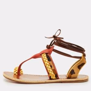 Pre Owned صندل كريستيان لوبوتان جولدي جولي جلد متألق أصفر بمربط للكاحل مقاس 37