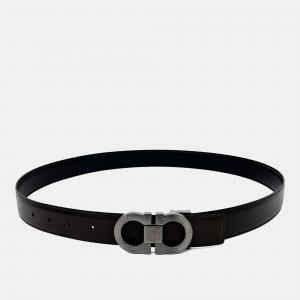 Pre Owned حزام سالفاتوري فيراغامو جلد أسود وبني قابل للانعكاس