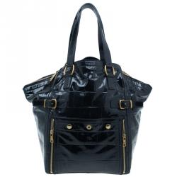 حقيبة سان لوران باريس داون تاون جلد نقشة التمساح أسود لامع وسط