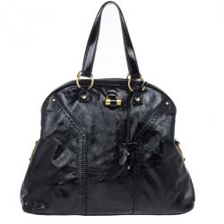 حقيبة سان لوران باريس ميوز تو جلد أسود لامع كبيرة