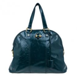 حقيبة يد سان لوران باريس ميوز جلد أزرق لامع كبيرة
