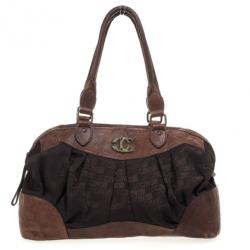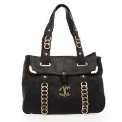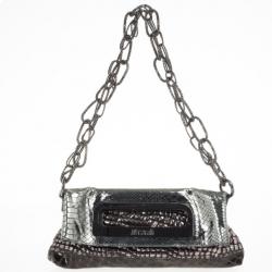 Just Cavalli Leather Metallic Embossed Chain Shoulder Bag