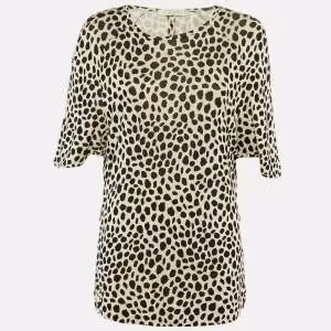 Yves Saint Laurent Brown Leopard Printed Silk Satin Cowl Neck Detail Shift Dress L