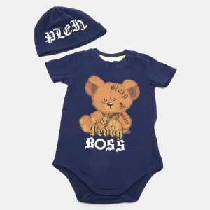 Philipp Plein Baby Blue Teddy Boss Print Cotton Sam D Romper Set 6-9M