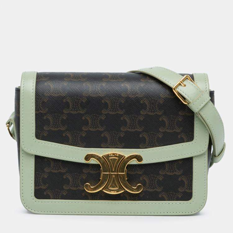 Pre Owned Celine Brown Teen Triomphe Coated Canvas and Calfskin Triomphe Crossbody
