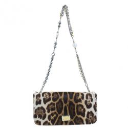 Dolce and Gabbana Small Leopard Print Pony Hair Charles Bag