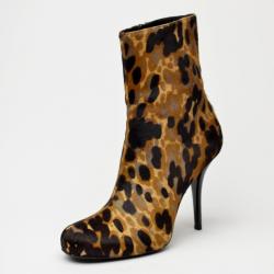 Balenciaga Leopard Printed Pony Hair Ankle Boots Size 39.5