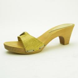 Emporio Armani Cream Croc Embossed Wooden Clogs Size 38