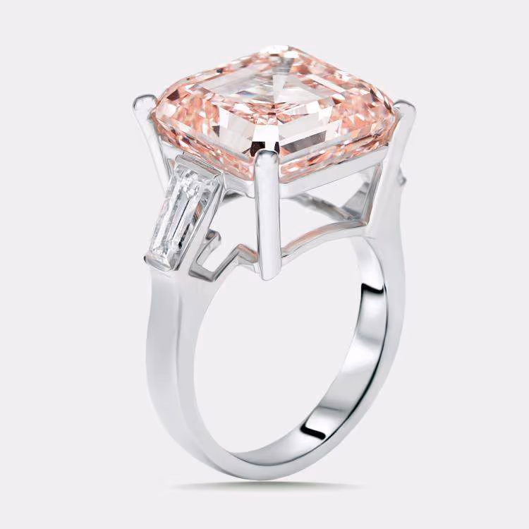 13 cts Asscher, Trapezoid Lab Grown Diamonds 18k White Gold Ring Size 53