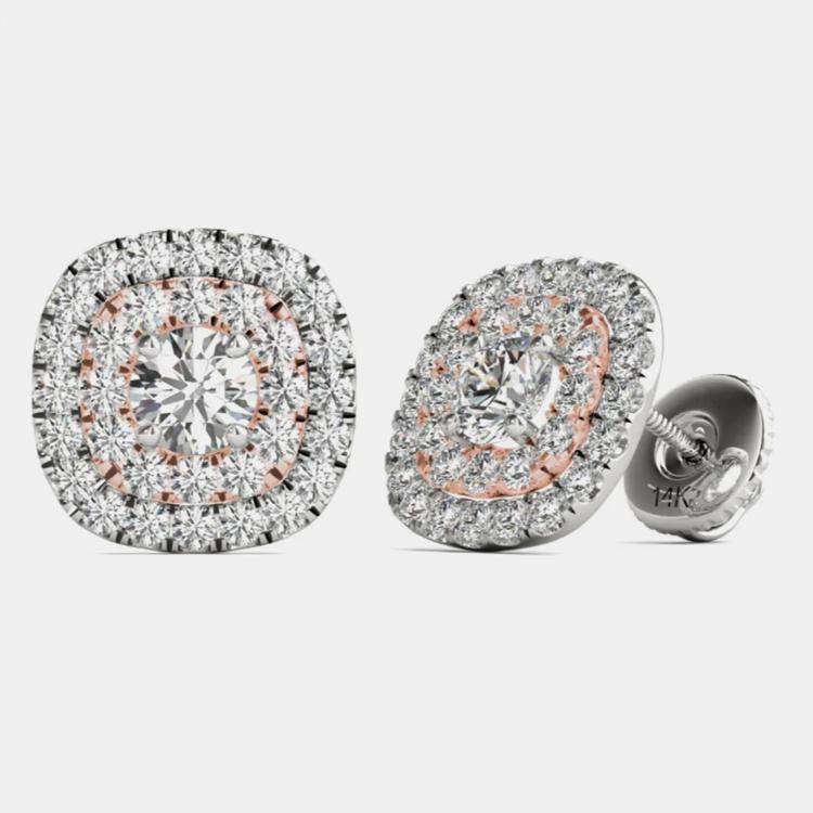 Big Halo Wht-40 Pcs/0.40 Ct; Small Halo Pink -24 Pcs/0.24 Ct; Center-2 Pcs/0.38 Ct; 1.00 Ctw, GH+/SI2-I1+