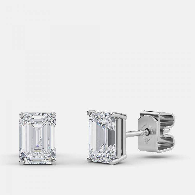 6.00 Ct Emerald 14K White Gold Lab Grown Diamond Solitaire 4 Prong Earring