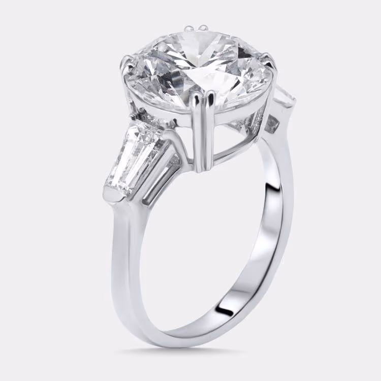 7 cts Round, Trapezoid Lab Grown Diamonds 18k White Gold Ring Size 53