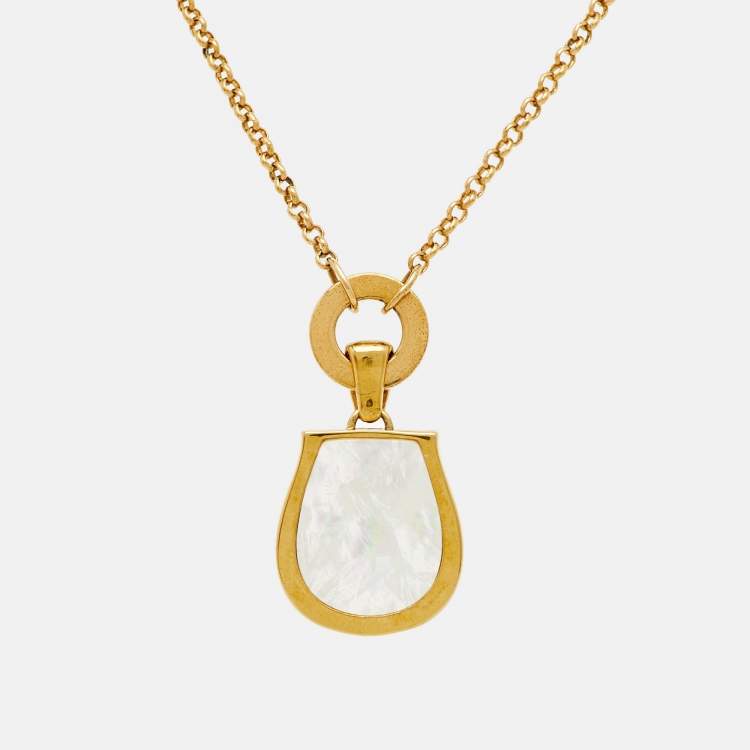 Pre Owned Aigner Faux Pearl Gold Tone Pendant Necklace