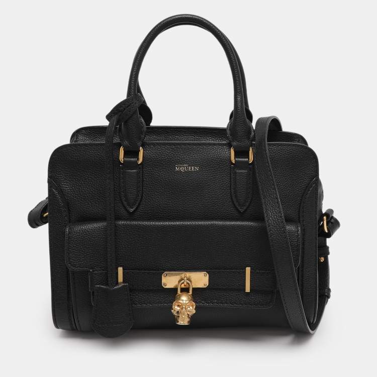 Pre Owned Alexander McQueen Black Leather Skull Padlock Satchel