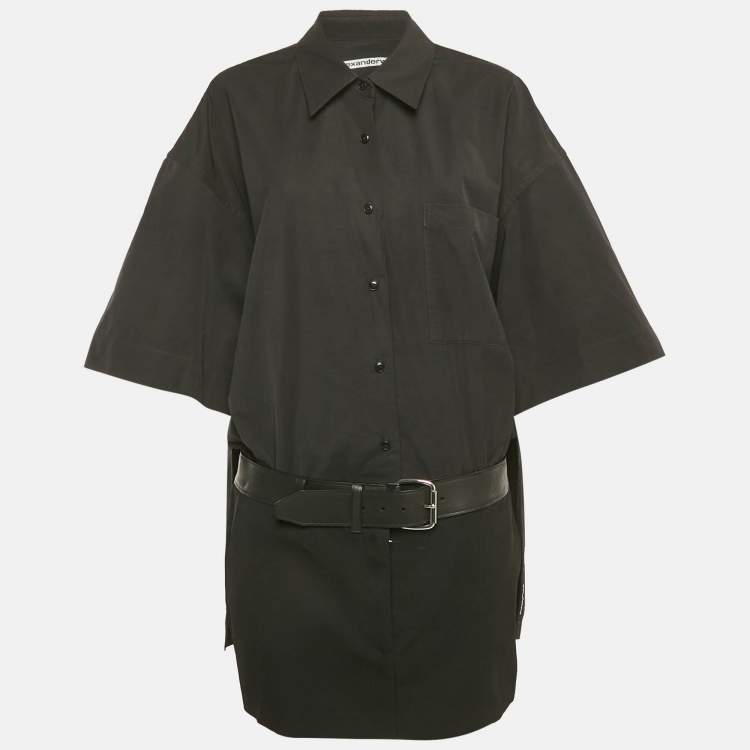 Pre Owned Alexander Wang Black Cotton Belted Hybrid Mini Shirt Dress L