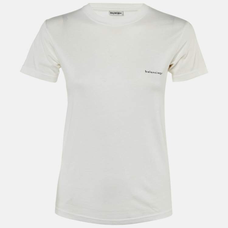 Balenciaga White Logo Print Cotton Crew Neck T-Shirt XS