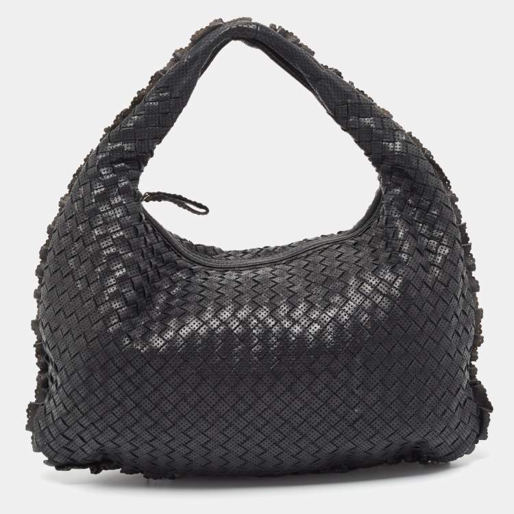 Bottega Veneta Black Intrecciato Perforated Leather Medium Veneta Hobo