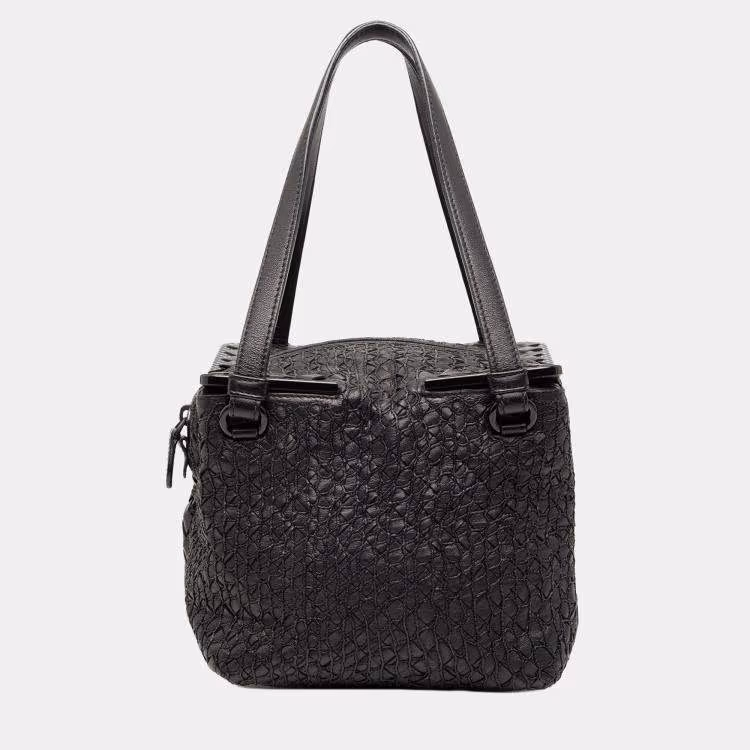 Bottega Veneta Black Nappa Intrecciato Square Handbag