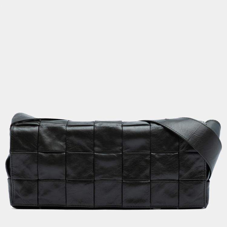 Pre Owned Bottega Veneta Black Stretch Paper Calfskin Intrecciato Cassette Crossbody