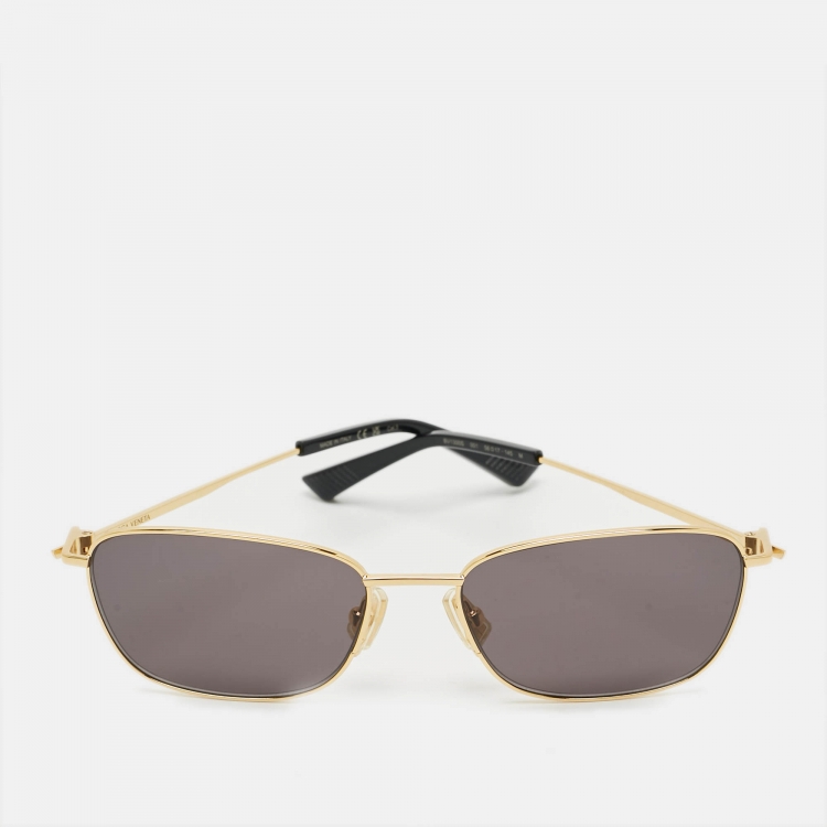 Pre Owned Bottega Veneta Black/Gold BV1300S Rectangle Sunglasses