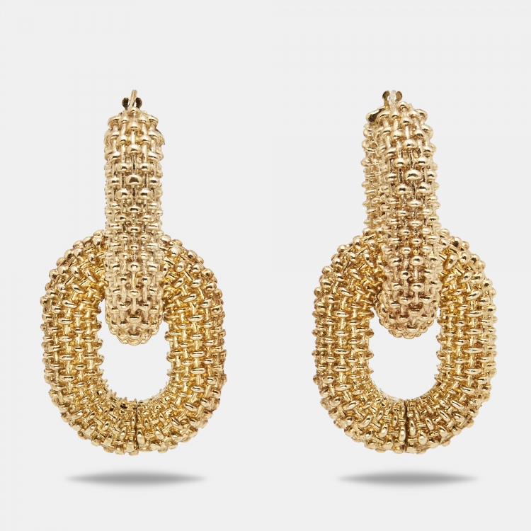 Pre Owned Bottega Veneta Double Hoop Gold Tone Drop Earrings