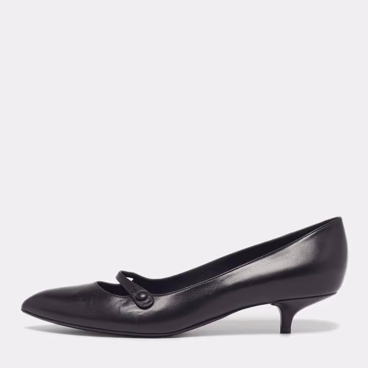 Pre Owned Bottega Veneta kitten Heel Size 38 Black Leather Mary Jane Pumps