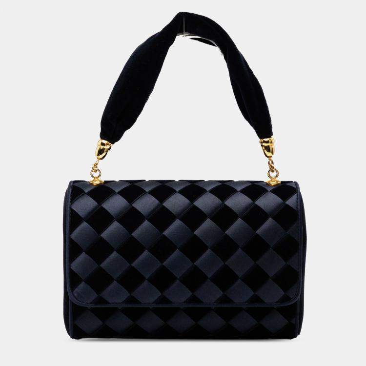Bottega Veneta Navy Blue Velvet and Satin Intrecciato Top Handle Bag