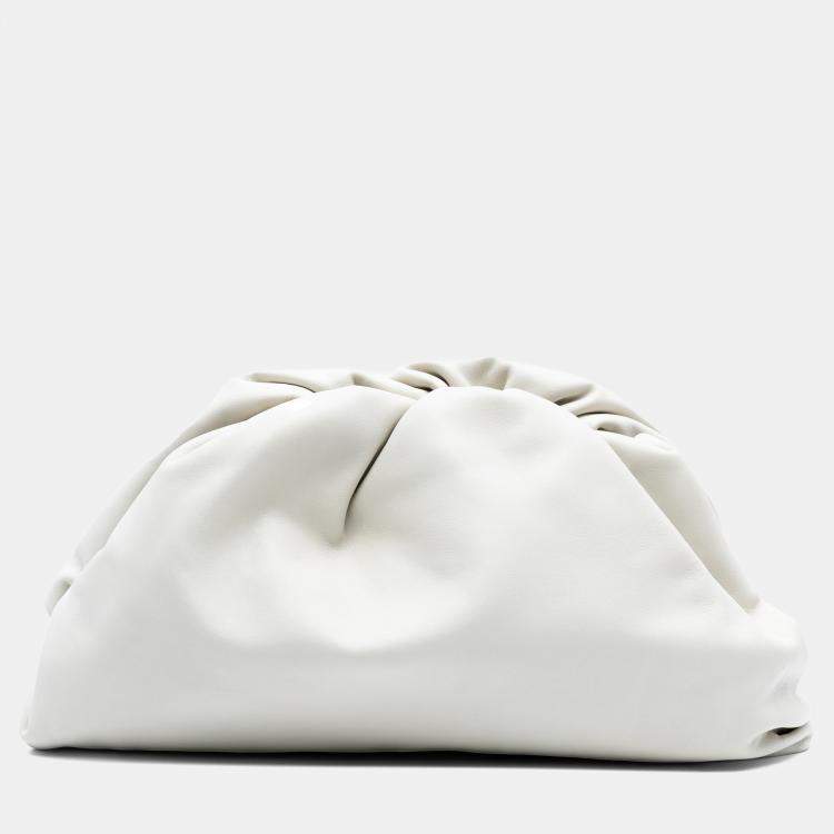 Pre Owned Bottega Veneta White Lambskin The Pouch