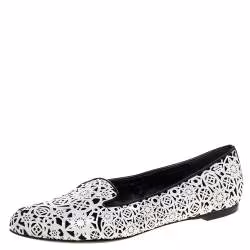 Alexander McQueen Monochrome Laser Cut Patent Leather Smoking Slippers Size 37