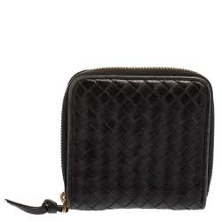 Bottega Veneta Black Intrecciato Leather Zip Around Wallet