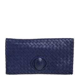 Bottega Veneta Dark Purple Intrecciato Leather Twist Lock Clutch