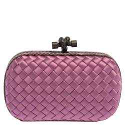 Bottega Veneta Pink Satin and Snakeskin Trim Knot Clutch