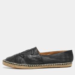 Chanel Two Tone Printed Tweed CC Espadrille Flats Size 37