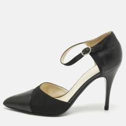 Chanel Black Leather and Canvas Pointed Toe Ankle Strap Pumps Size 40