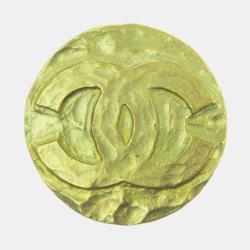 Chanel Button Rhinestone Earrings Clip-On Gold