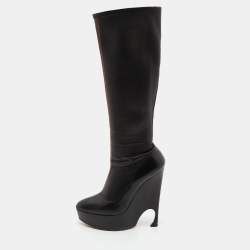 Dior Black Woven Fabric and Suede Bow Peep Toe Slingback Platform Pumps Size 38