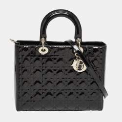 Dior Black Cannage Patent Leather Large Lady Dior Tote