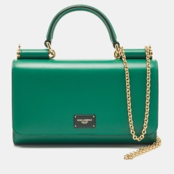 Dolce & Gabbana Green Leather Miss Sicily Wallet on Chain
