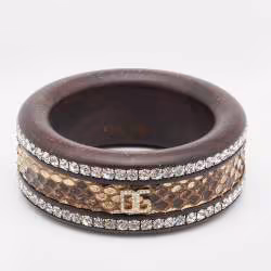 Dolce & Gabbana Brown Crystal Embellished Python Insert Bangle M