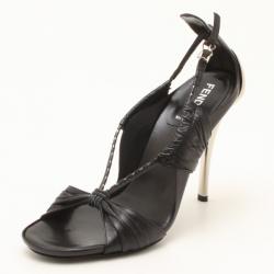 Fendi Black Leather & Silver High Heel Sandals Size 37.5