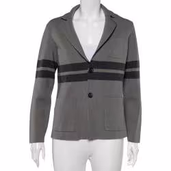 Giorgio Armani Grey Wool Stripe Detailed Button Front Cardigan XL