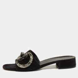 Gucci Black Suede Maxime Flat Sandals Size 38.5