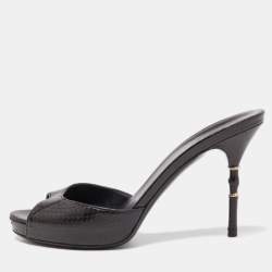 Gucci Black Python Bamboo Heel Slide Sandals Size 38.5