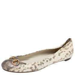 Gucci Grey/Cream Karung Leather Horsebit Ballet Flats Size 38