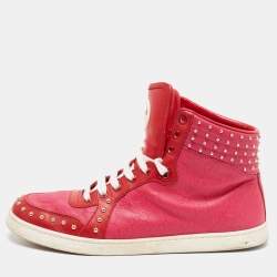 Gucci Pink/Red Guccissima Leather Studded Coda High Top Sneakers Size 41
