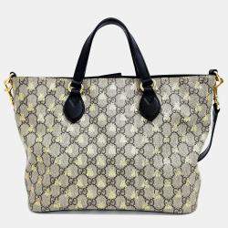 Gucci Black/Beige GG Canvas Bee Tote Bag