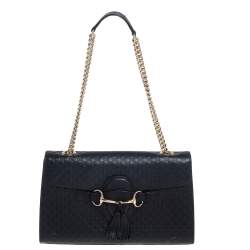 Gucci Black Pebbled Leather Medium Heritage Shoulder Bag